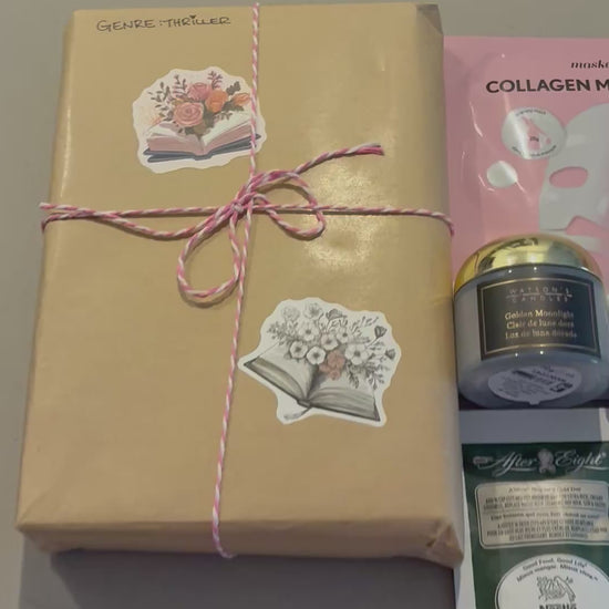 This bundle includes your choice of mystery paperback, a soothing hot drink, a bookmark, 5–6 bookish stickers, plus self-care goodies for a true “me-time” experience.